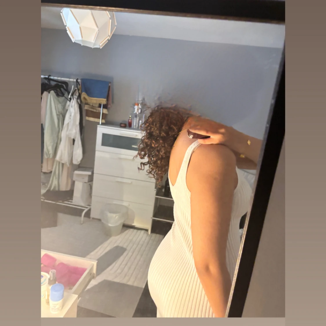 Vit ribbad medellång klänning med slits