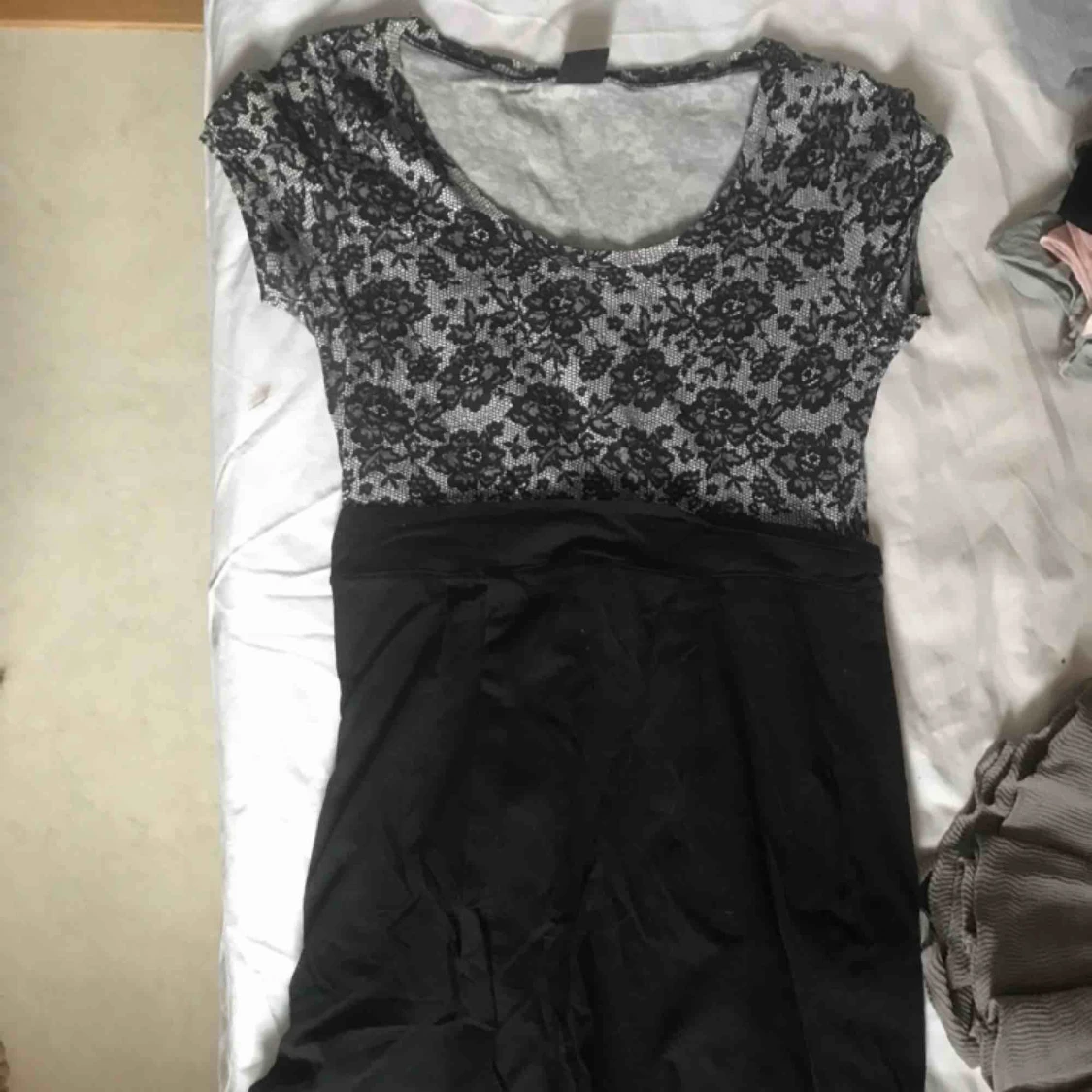 Vit prickig kortklänning från Bershka - Supersöt vit kortklänning med svarta prickar från Bershka i storlek S (liten i storleken). Klänningen har bara prövats på en gång. Slutsåld på hemsidan och på zalando.