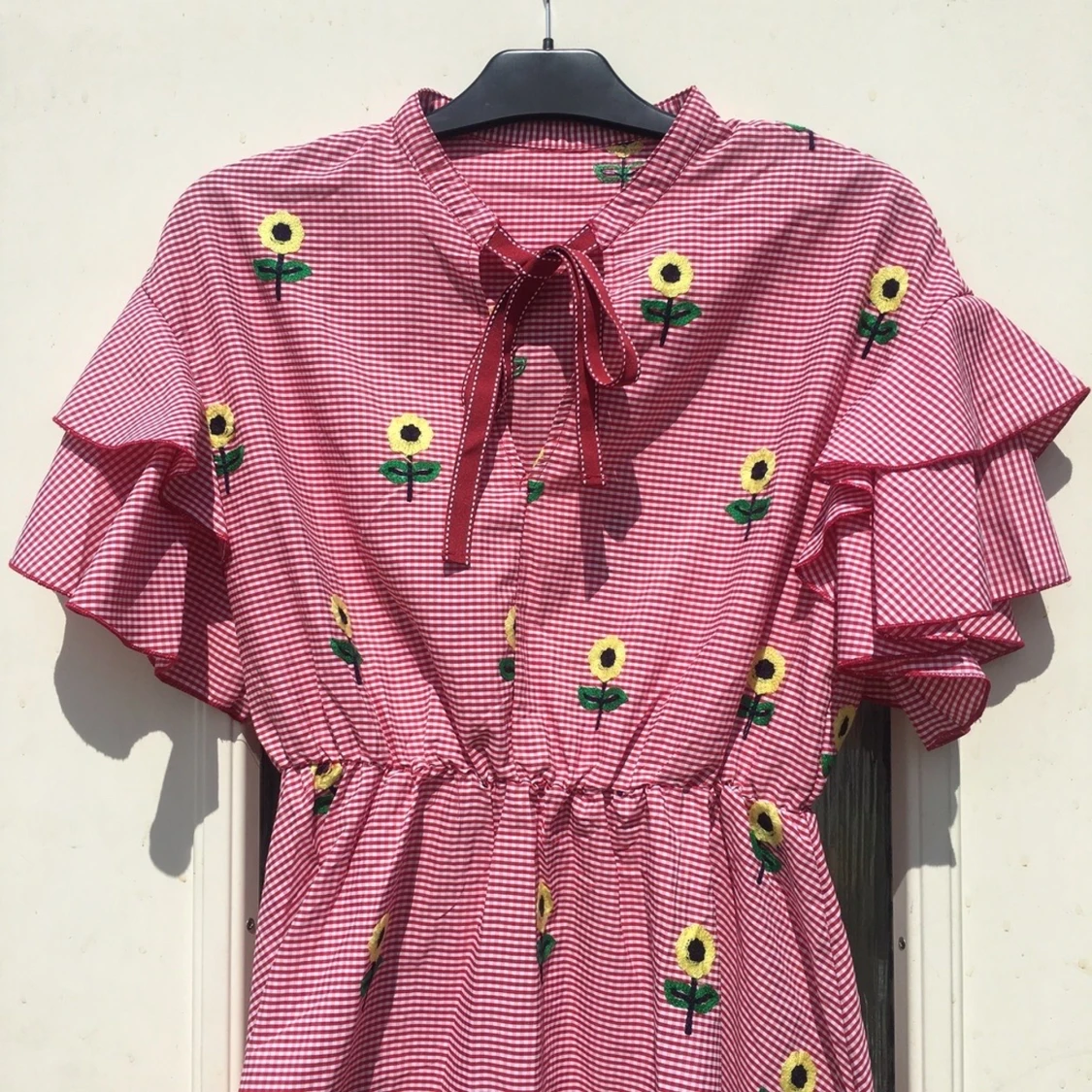 Klänning med solroser 🌻 Använd en gång? 🌻 Rosett vid halsen 🌻 Precis som ny 🌻