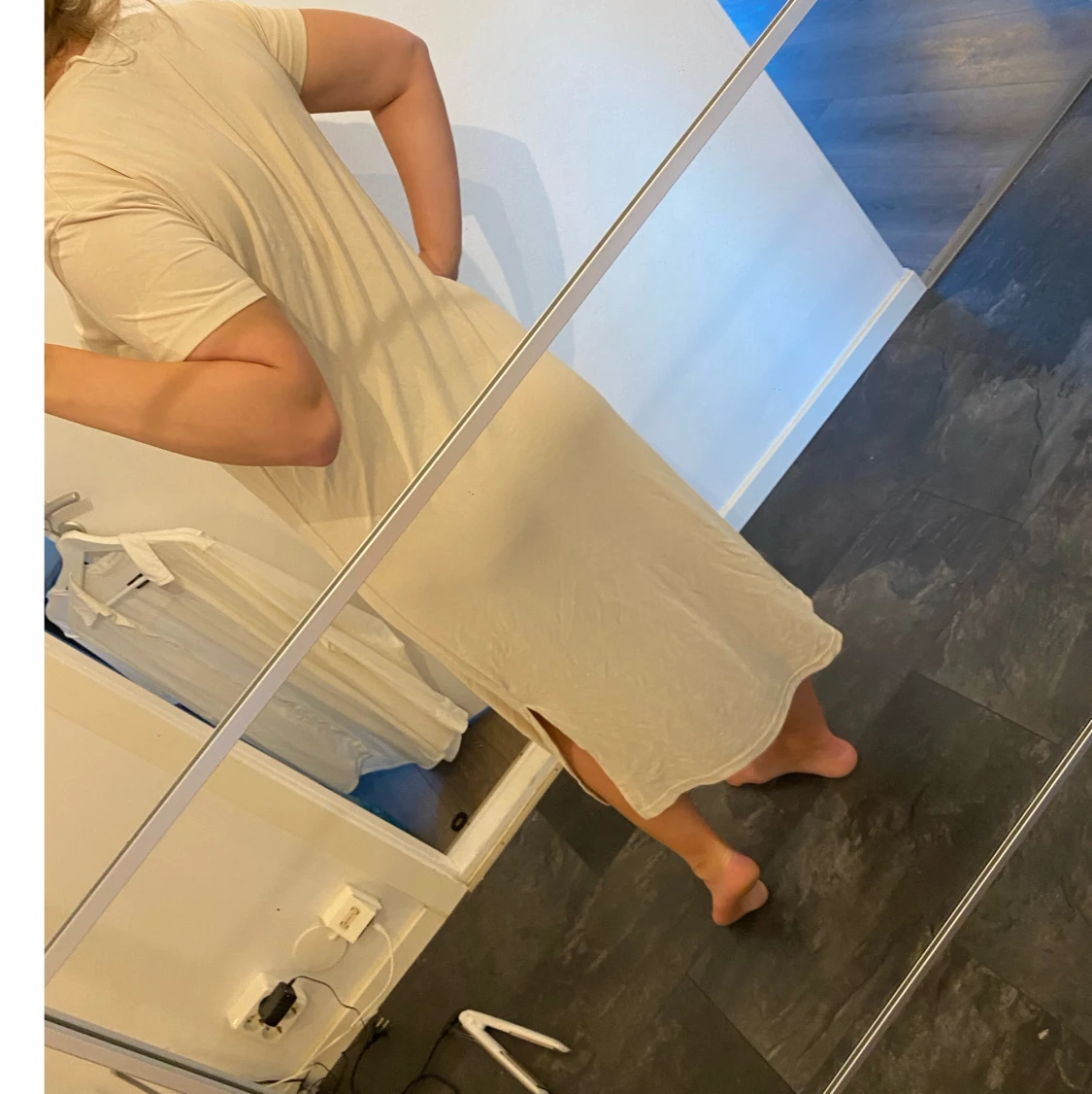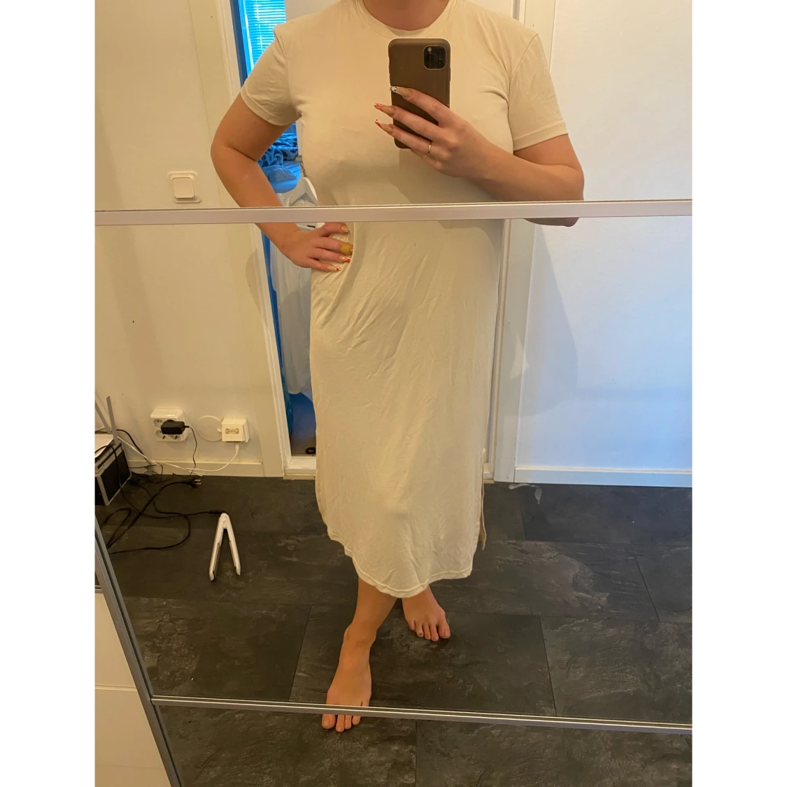 Lång beige klänning med slits