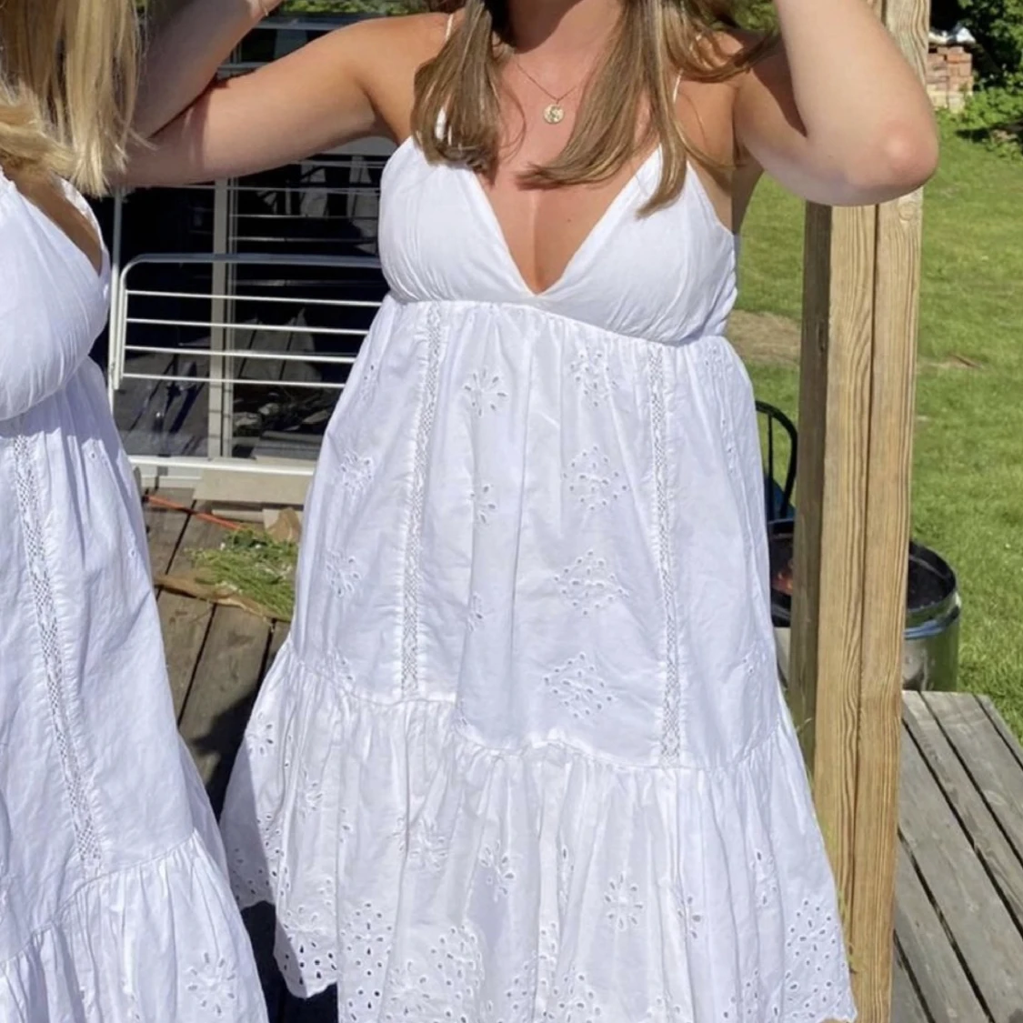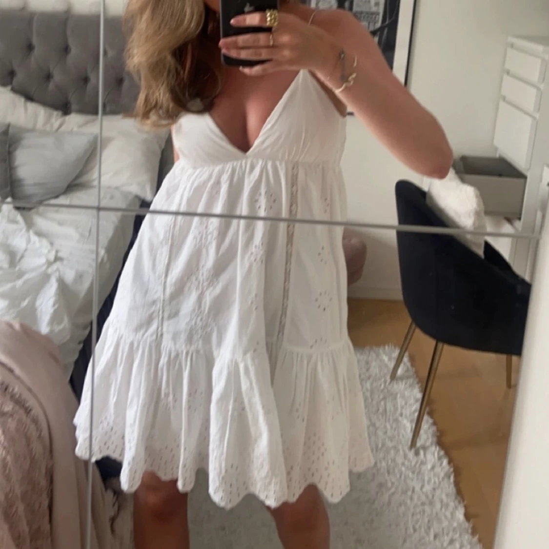 Vit söt klänning från zara💘 Aldrig använd med prislapp kvar. Kan nog passa en S också! Bud på 380kr