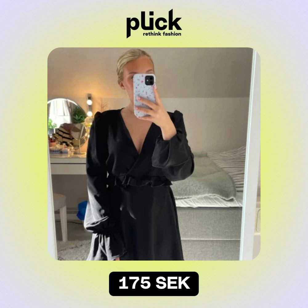 Säljer nu denna fina klänning från Nelly, köpt till nyår och är endast använd 1 gång. Storleken är xs men ganska stor så passar en s också. Klänningen har öppen rygg (ungefär vid ländryggen) och fina volangdetaljer🤩 Perfekt till fest till exempel!