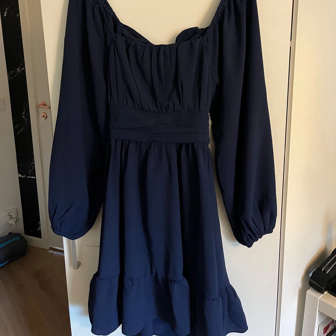 Blå klänning med med öppen rygg man kan ändra på banden och knyta hur man vill💗