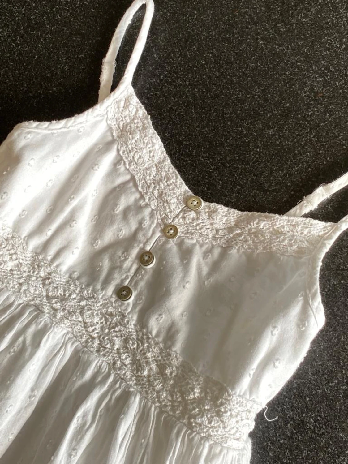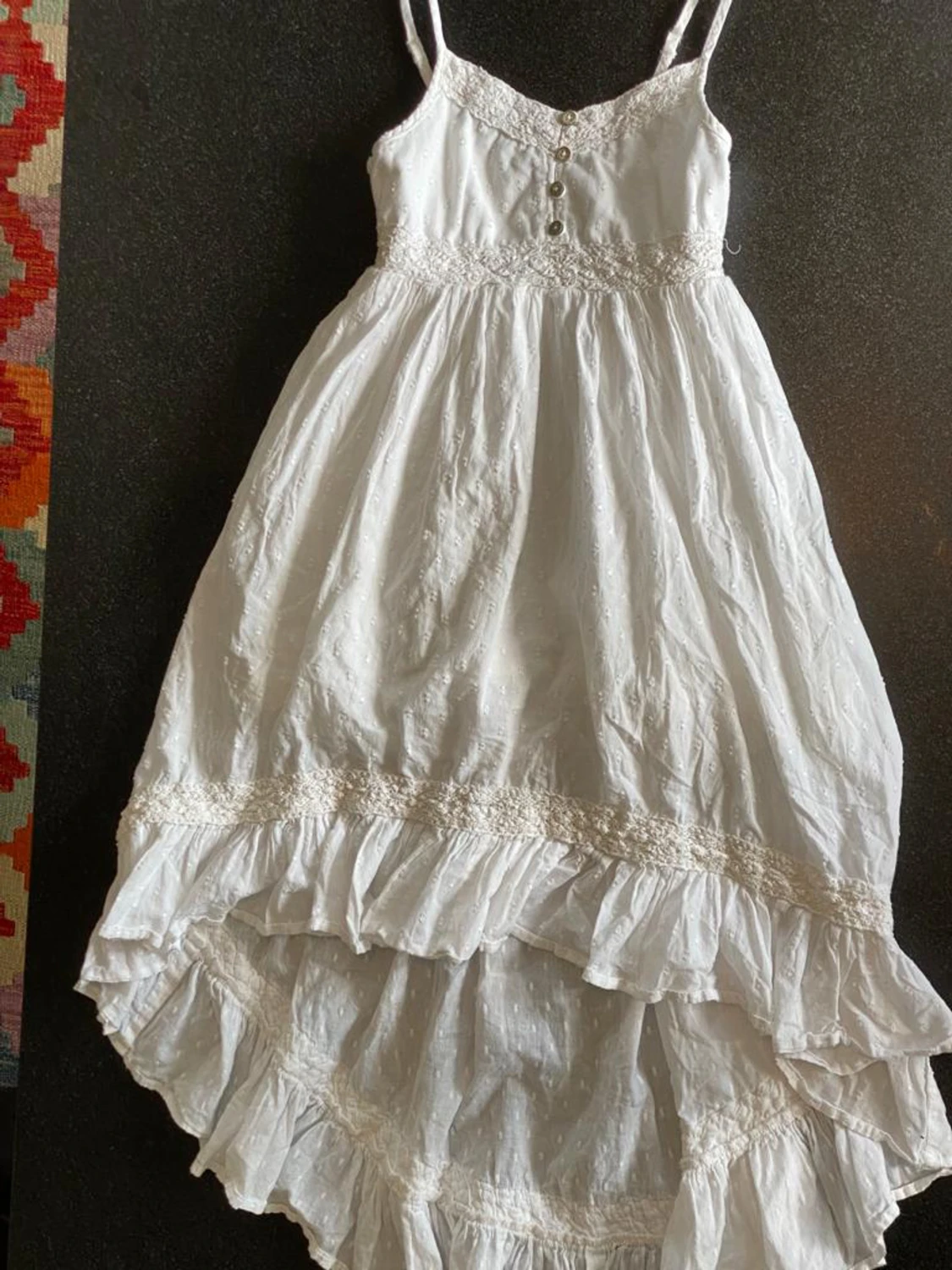 En vit sommar klänning som är längre där bak. Inte genomskinlig. 100% bomull.