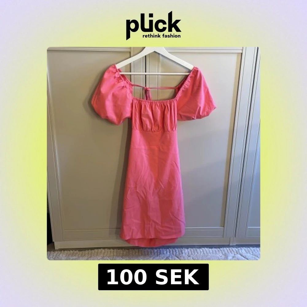 Medellång rosa klänning i storlek S med gnyten rygg, från SHEIN. Aldrig använd