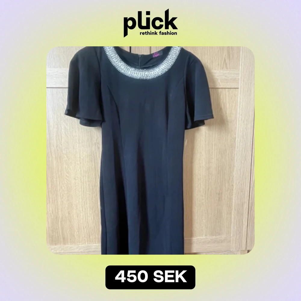 En svart klänning med detaljer på, använd få tal gånger. Storlek berodde på hur man vill att den sitter, S om den ska sitta lösare M om den ska sitta tajtare❤️