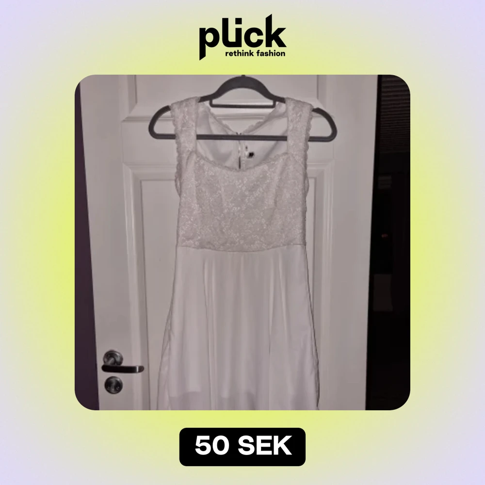 Vit långklänning med rosett i ryggen - Nu säljer jag min fina balklänning jag hade i våras! Den är alltså bara använd en gång. Den är lång och har en stor, fin rosett i ryggen. Den har ett långt släp men jag har sytt upp det så att det inte släpar lika mycket. Jag är ca 1.70 och den gick hela vägen ner med klackar på!! Jag köpte den för 1700, så 1200 är ett väldigt bra pris. Hör gärna av er vid frågor osv!