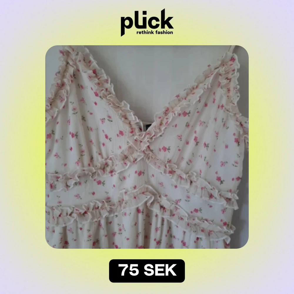 Rosa kort klänning med volanger - Säljer en söt rosa kort klänning med tunna axelband och volangdetaljer. Klänningen har prickigt mönster och är tillverkad i ett lätt, luftigt material som ger en skön känsla. Perfekt för varma dagar!!