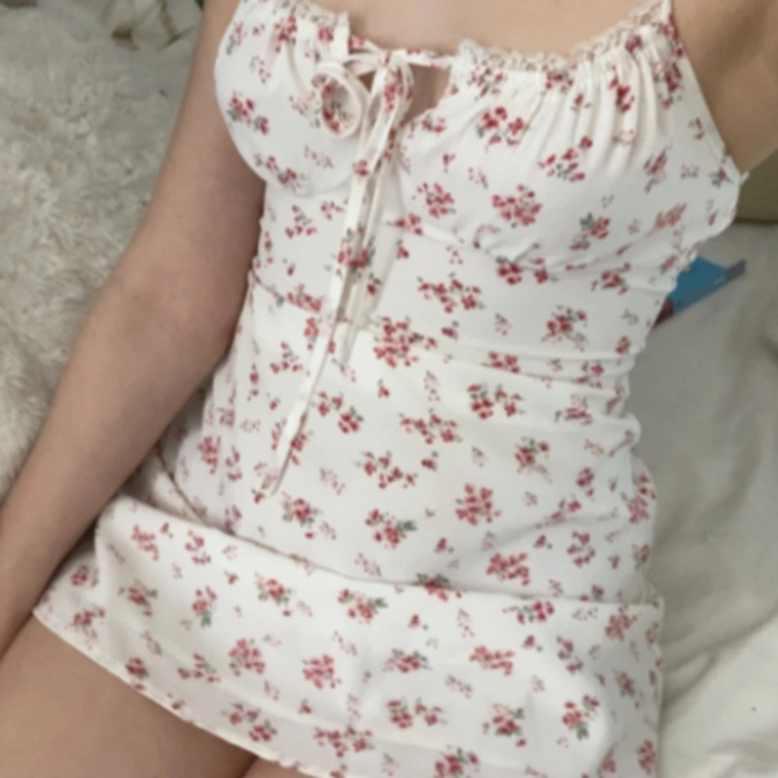 En jättefin sundress med fina rosa/röda blommor perfekt nu till sommaren. Klänningen har inga skador. Säljer då den har blivit för kort för mig.
