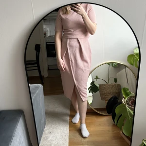 En jĂ€ttefin rosa klĂ€nning som ser ut som att den Ă€r tvĂ„delad. KlĂ€nningen har textur. Jag har aldrig fĂ„tt sĂ„ mycket komplimanger som för denna klĂ€nningenđ