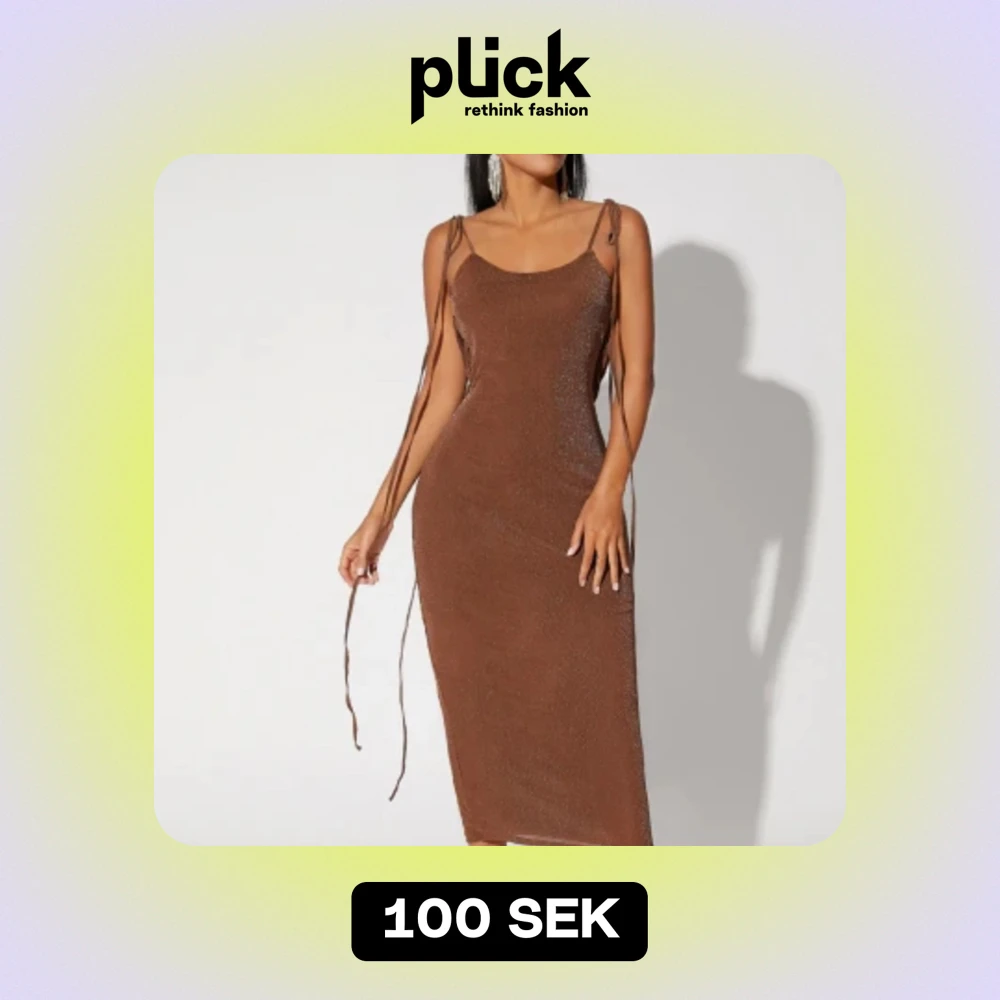 En jätte fin brun glittrig klänning som aldrig är använd, den andra bilderna visar bara hur klänningen ser ut bakifrån men den jag säljer är brun. Den är super stretchig så passar flera storlekar🤍