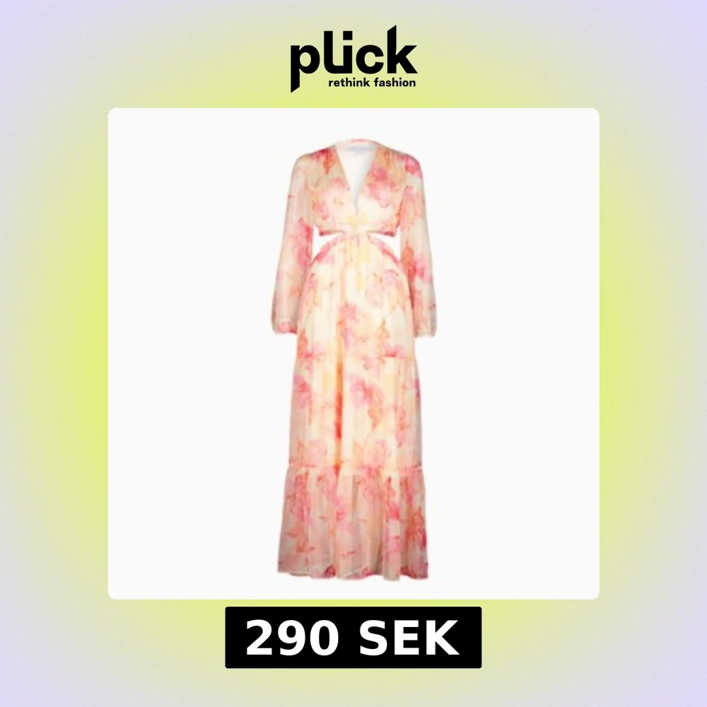 Superfin lÄngklÀnning frÄn Amisu med blommigt mönster i rosa och ljusa toner. Endast anvÀnd en gÄng! KlÀnningen har v-ringning, lÄngÀrmade Àrmar och markerad midja med volangdetalj nertill. Perfekt för sommarens alla tillfÀllen!