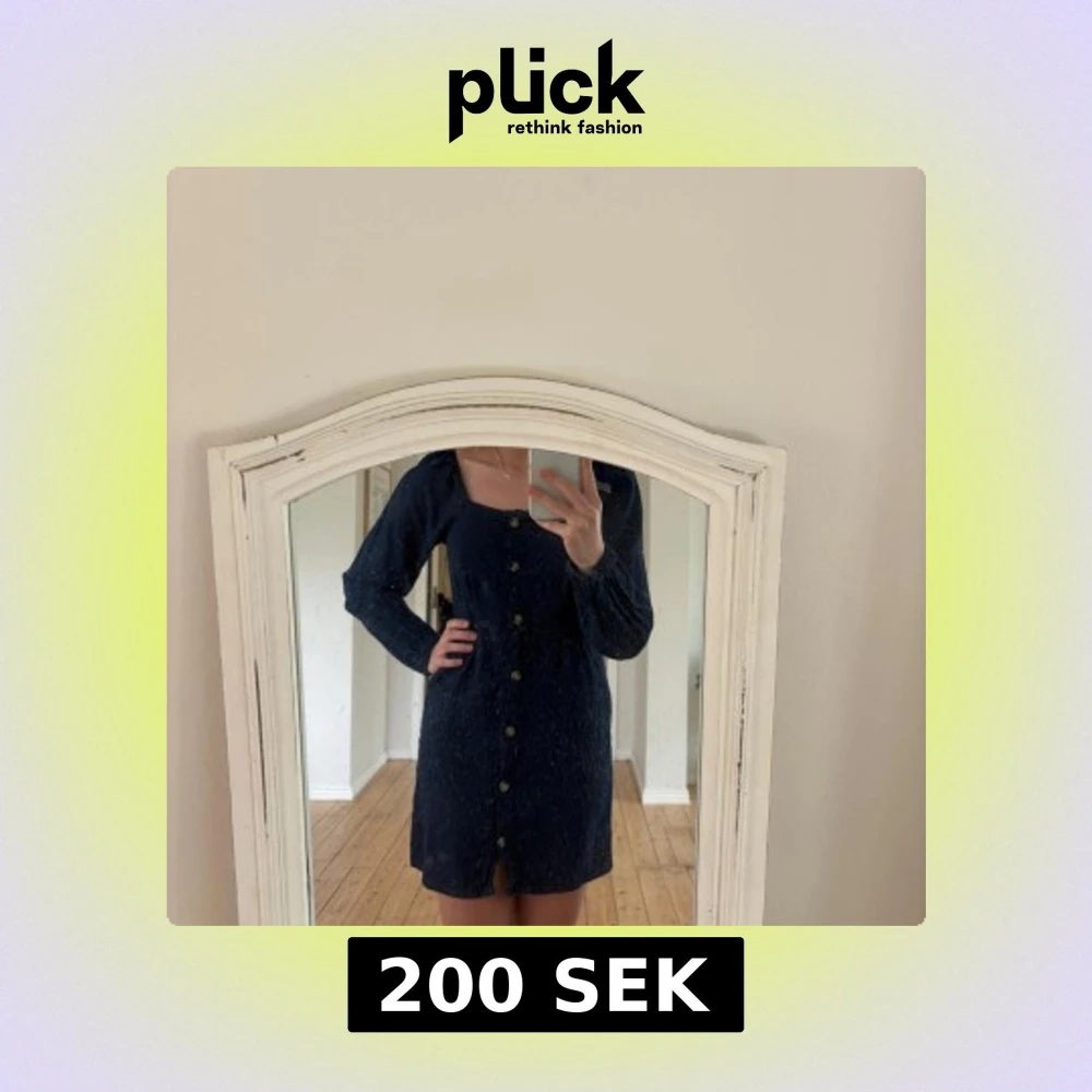 Snygg mörkblå klänning med knappar framtill och långa ärmar. Perfekt för en stilren look. Klänningen har en smickrande passform och är enkel att styla. Klänningen är i linne