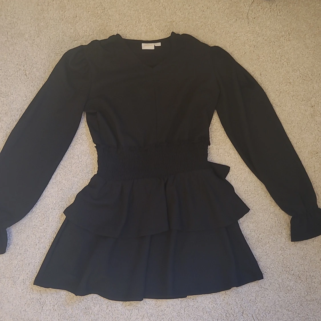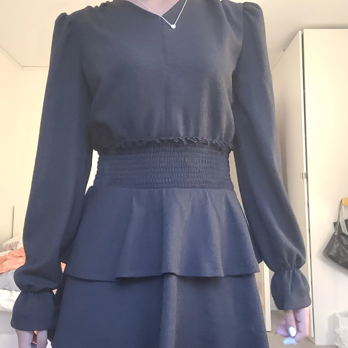 Fin klänning som passar bra nu till höst/vintern! Andvänd en gång så den är i nyskick. Den är i storlek 158-164 men skulle säga att den är xxs-xs.