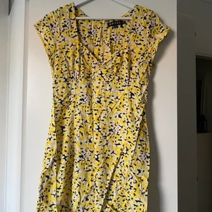 Kort gul/blommig klänning i Strl M. Kommer inte ihåg vilket märke det är på klänningen men har för mig att den är beställd från Bubbleroom alternativt Nelly. Klänningen är endast använd en gång.