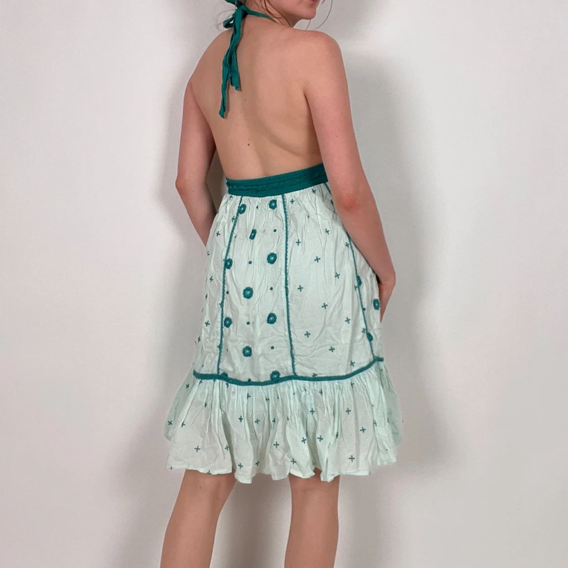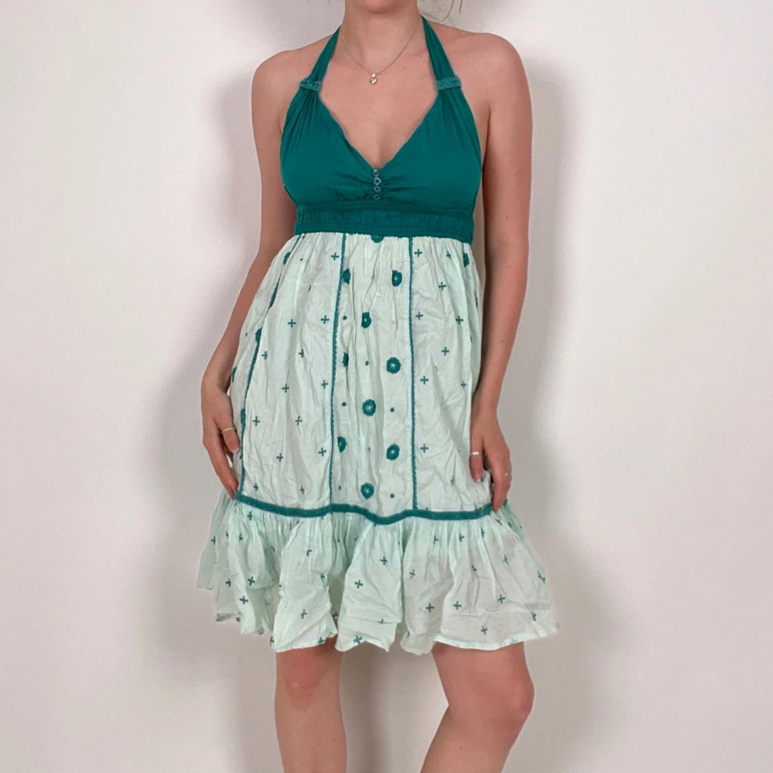 Superfin 2000s halterklänning!! Jag på bilden är 170cm och har storlek 36 på överdelar. Klicka på köp nu <3