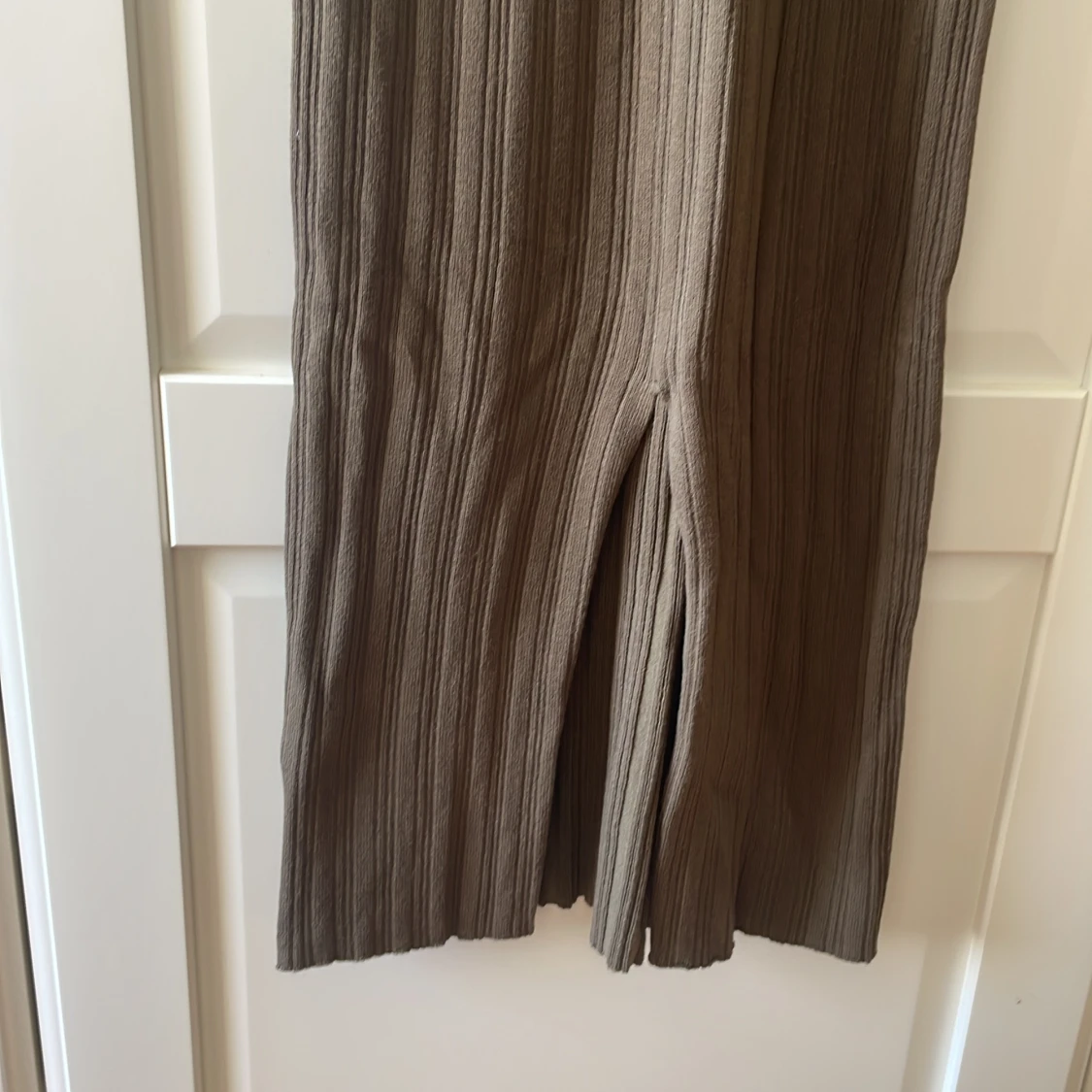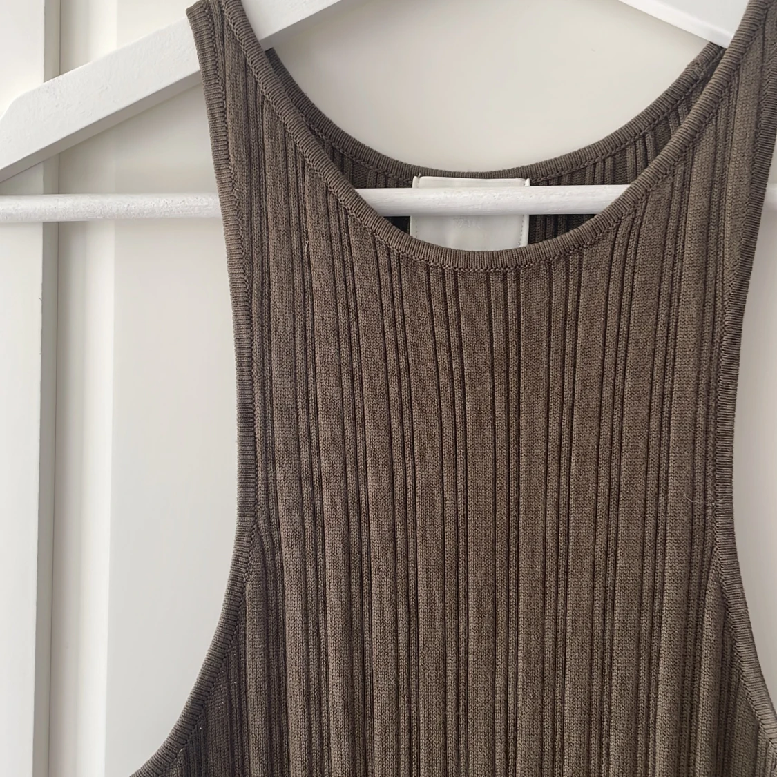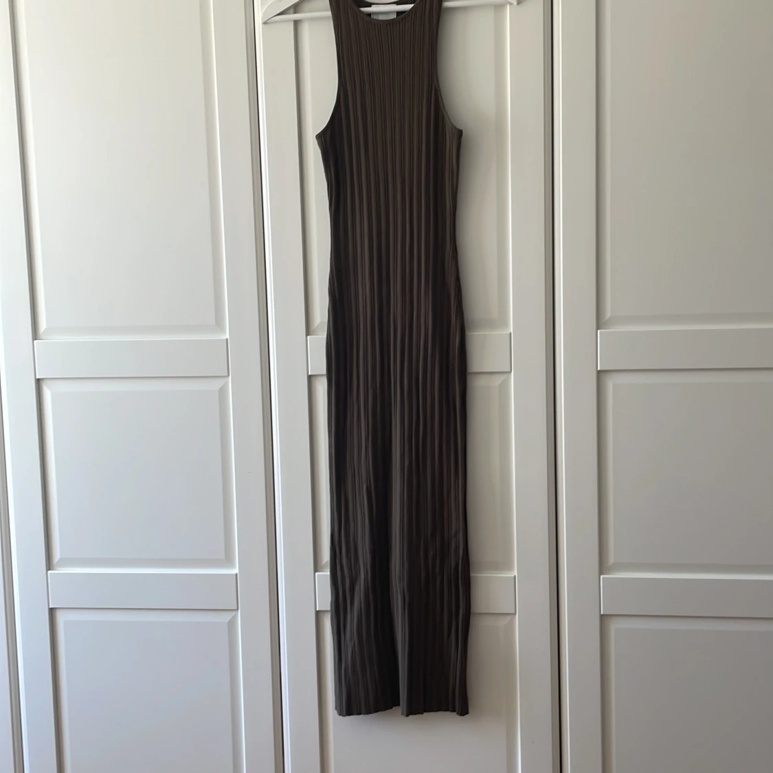 Ribbad långklänning från HM med slits bak i strl XS. Går ner till ankeln på mig som är 168 cm. Färgen är khakigrön/brun. Mycket fint skick, använd vid enstaka tillfällen.