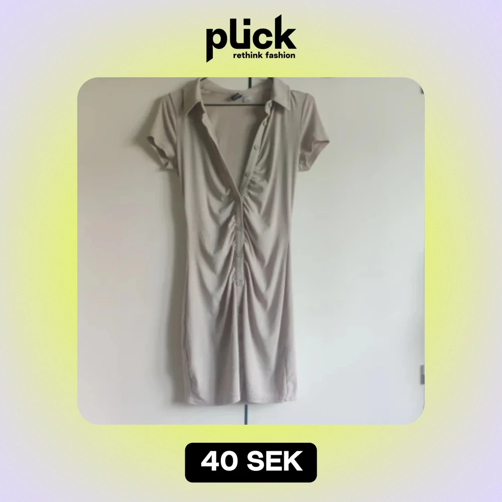 Tight beige klänning med krage och knappar hela vägen. Lite scrunch. Storlek S, bra skick
