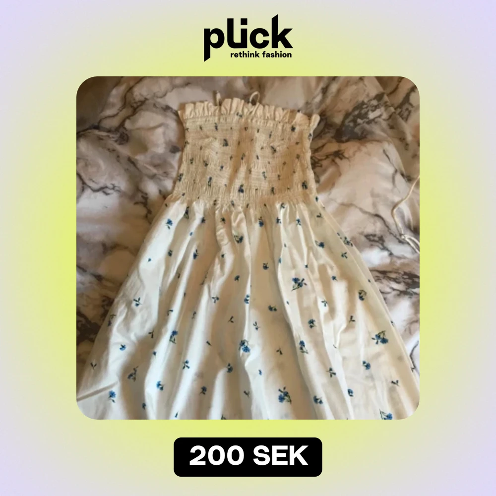 Jättesöt klänning från H&M som inte kommer till användning. Den är aldrig använd endast testad. Den har axelband som man även kan ta bort, skulle säga att den är till knäna. Skriv vid frågor💕 (Köparen står för frakten💗)