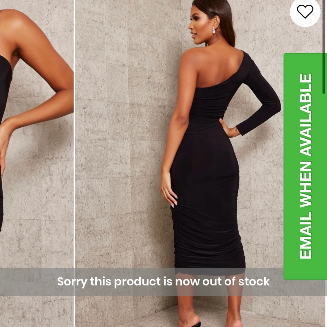 Black One Shoulder Ruched Side Slinky Midi Dress