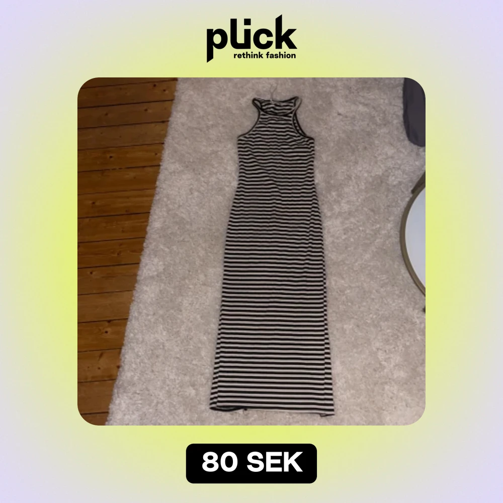 Randig klänning med en slit där bak. Den är figursydd och väldigt skönt tyg. Använd 2-3 ggr, så den är i väldigt bra skick. Hämtas i Göteborg eller fraktas!
