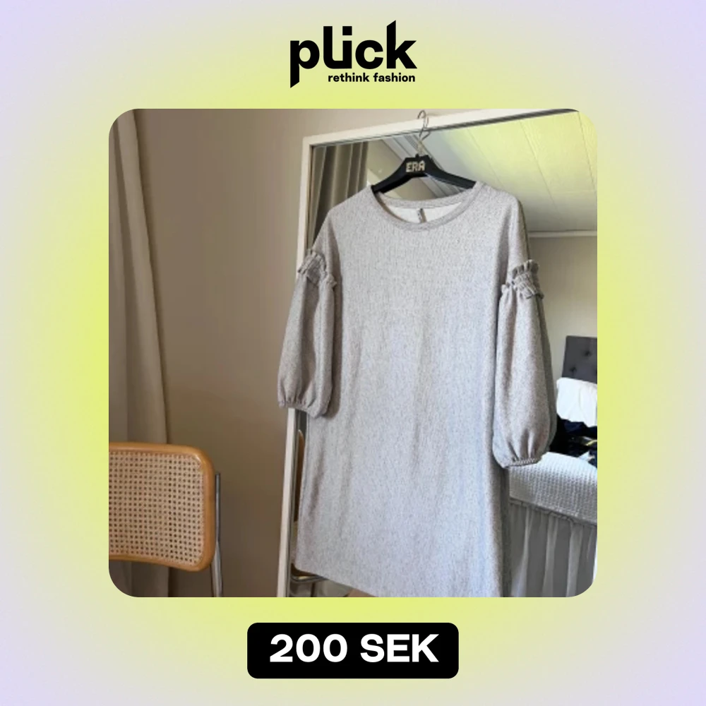 Fin klänning med puffärm. Gråmelerad. Från Stradivarius, storlek S. Lite använd. 200:-.