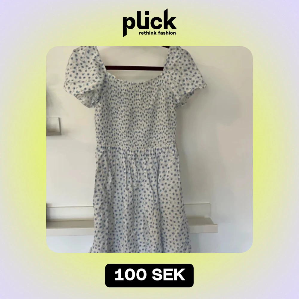 Storlek 158 men använde som xxs/xs. Vit och blåblommig klänning