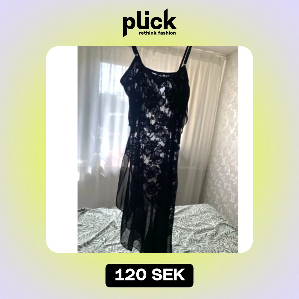 Nattlinne/ klänning i spets. Den sidan där klänningen är som kortast går över höften, vid midjan. Vet inte riktigt hur man bör klänningen men tror att den skulle va snygg till ett par jeans, dock inte min stil - därför säljer jag🤍