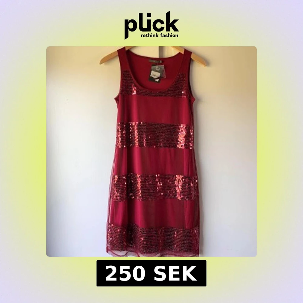 Oanvänd röd paljettklänning