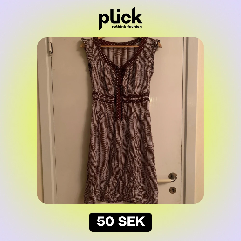 Säljer en jättefin klänning som tyvärr inte kommer till användning. Knytband framtill och volangdetaljer vid axlarna. Säljs pga kommer inte till användning🍁skriv för fler bilder eller vid frågor! Öppen för prutning