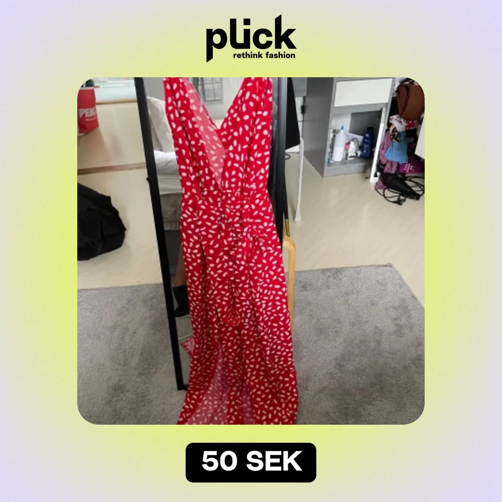 Säljer denna rödprickiga långklänning