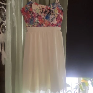 Blommig klänning i storlek xs/s. Är vaddering i bysten och finns dragkedja bak. Fint skick.