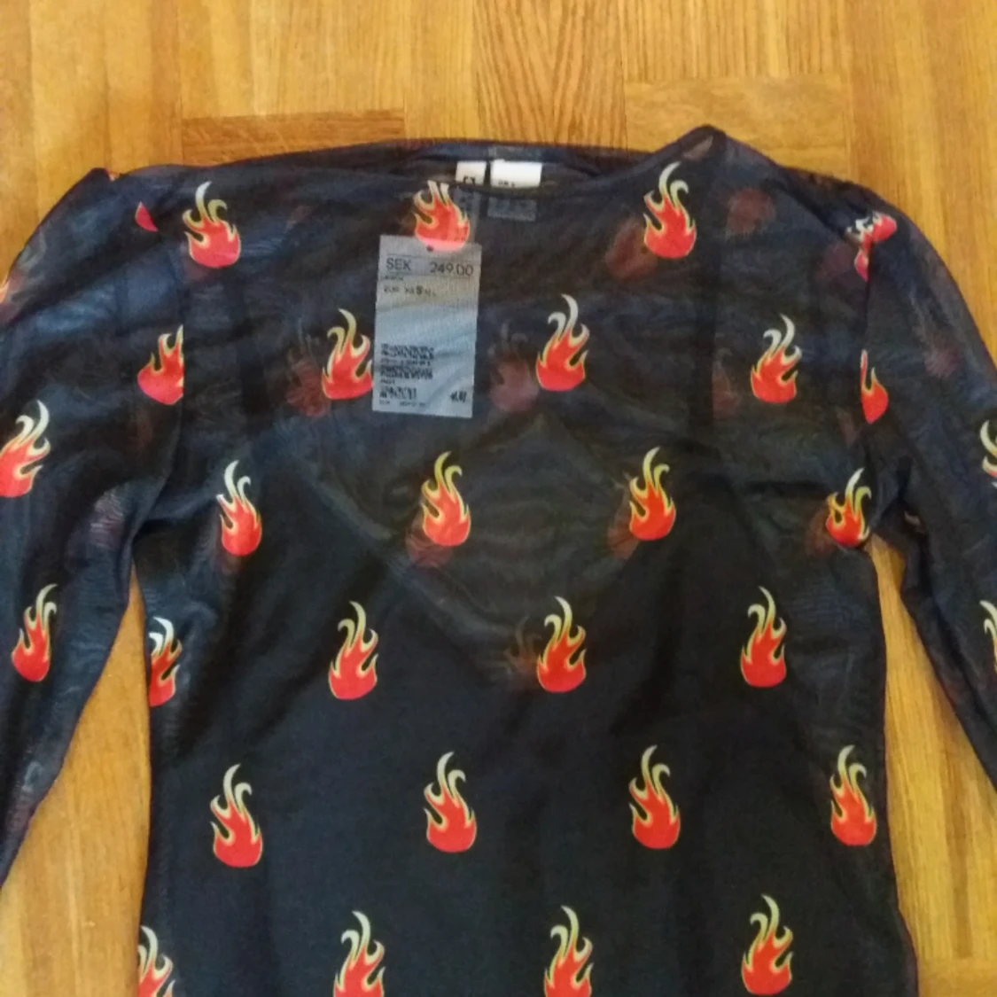 Oanvänd klänning med schysst tryck. Lappen sitter kvar. Frakt: 36kr.