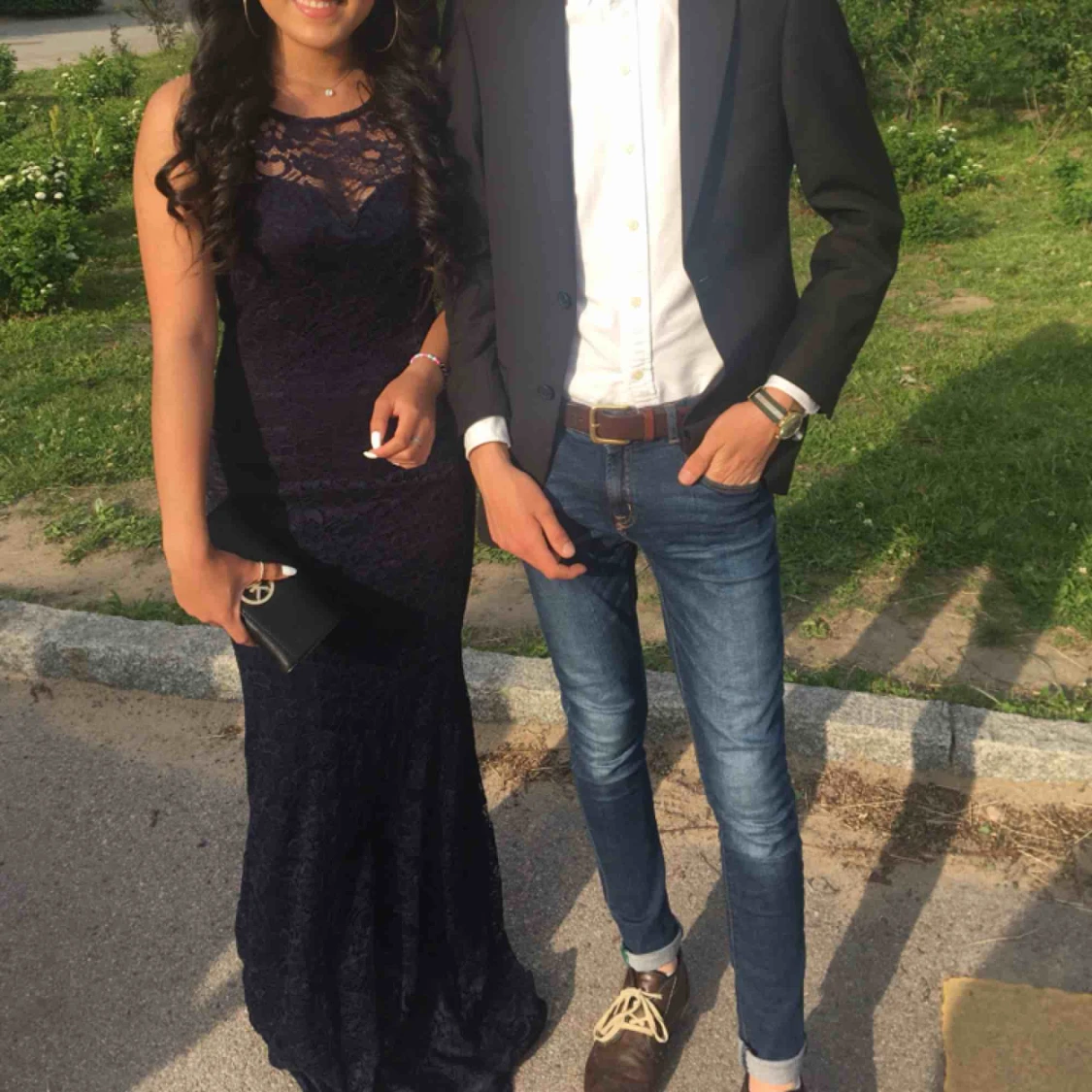 Marin blå lång klänning, använt 1 gång. Perfekt för bal
