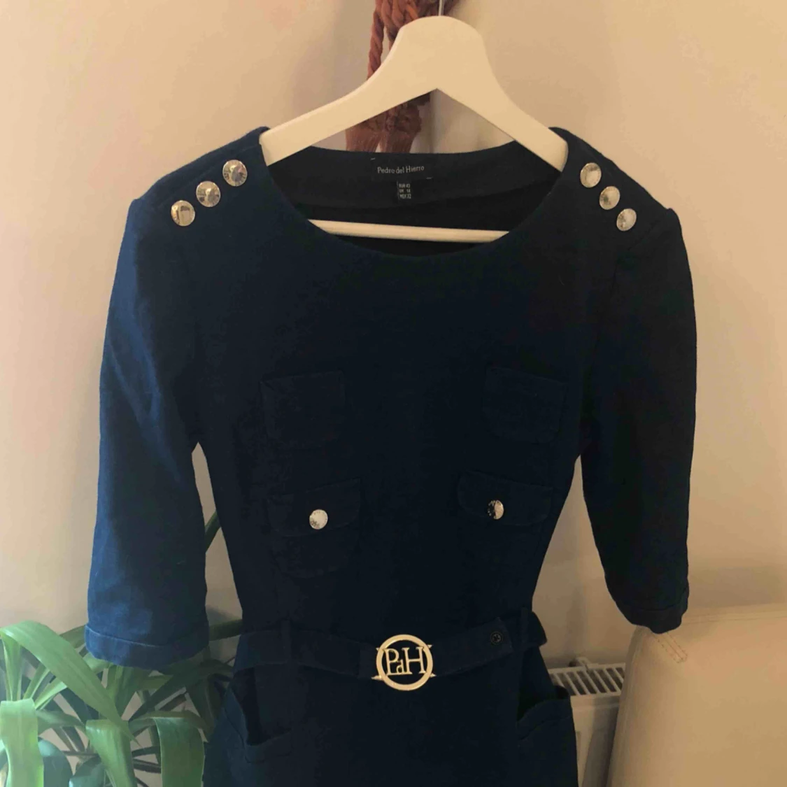 Pedro del hierro klänning, äkta. Ärvd. Nypris 3989:- cirkus. Storlek 42. Skulle mer säga som M. Knä lång. Marinblå