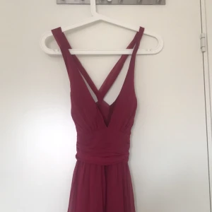Burgundyröd lång aftonklänning från Nelly Eve, aldrig använd med lapp kvar. Korsad rygg, djup v-ringning. Perfekt till bal eller liknande. Pris kan diskuteras vid snabb affär! Kan hämtas i Uppsala eller mötas i Uppsala/Stockholm.