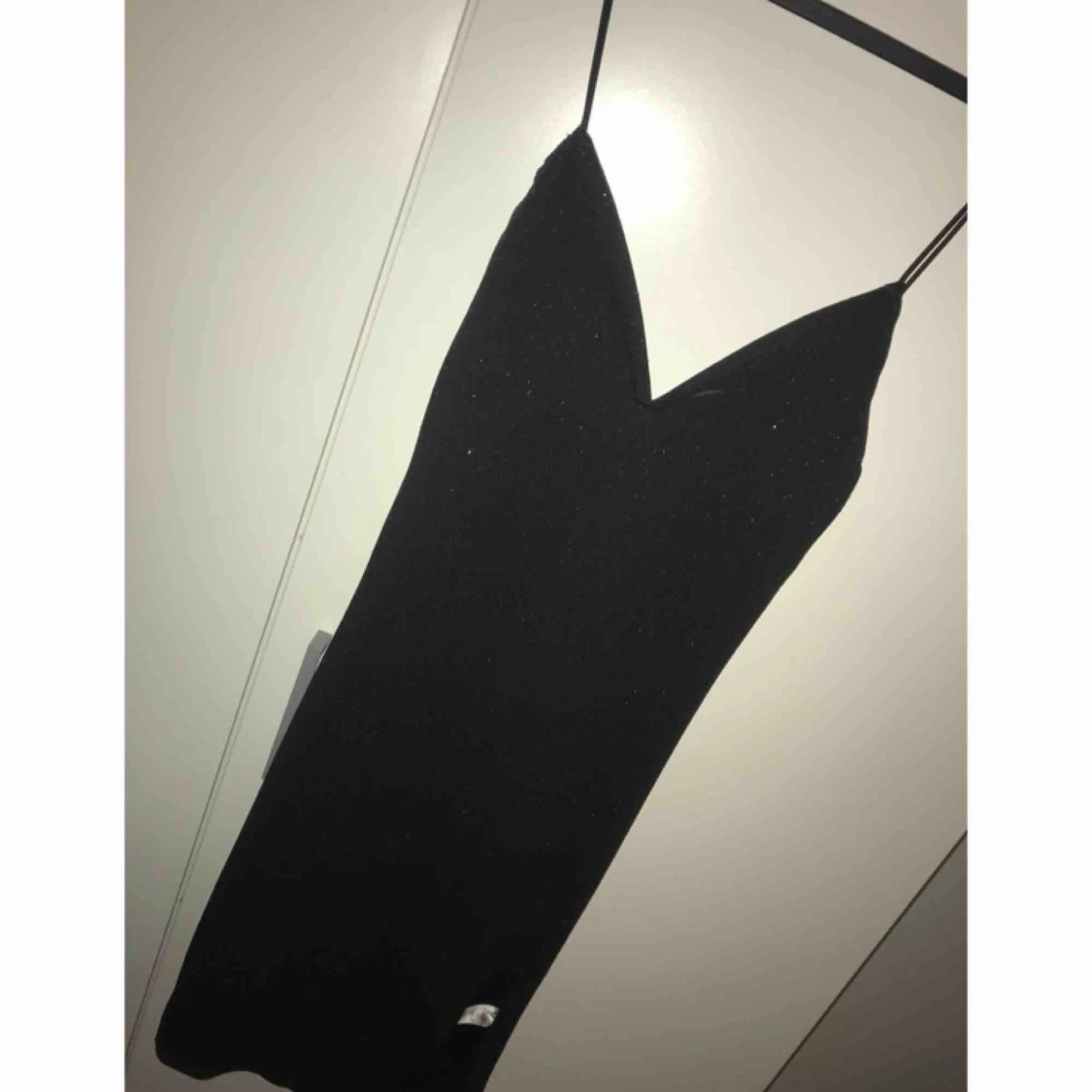 Jätte fin svart festklänning, som glittrar lite. Använd ett få par gånger. Klänningen är lite öppen vid sidan av låret vilket är jätte snyggg👌🏻👌🏻
