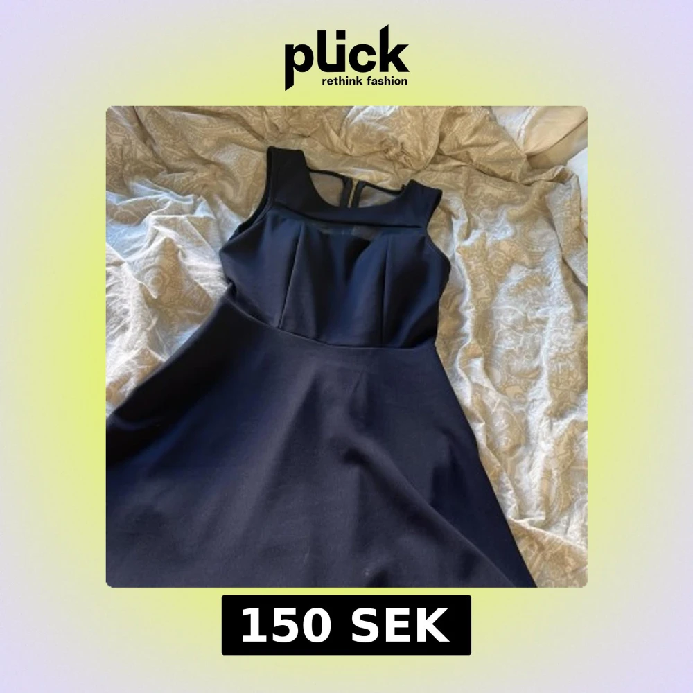 Elegant svart klänning med rund hals och transparenta mesh-detaljer vid axlarna. Klänningen är ärmlös och har en guldig dragkedja i ryggen. Knappt använd💕 inte de bästa bilderna men kan skicka bättre haha