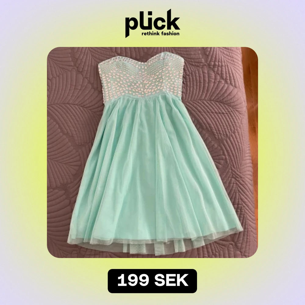 Superfin festklänning i turkos färg med skimrande stenar!🩵Passar till alla tillfällen och är verkligen superfin. Har endast använts en gång, och är i superskick