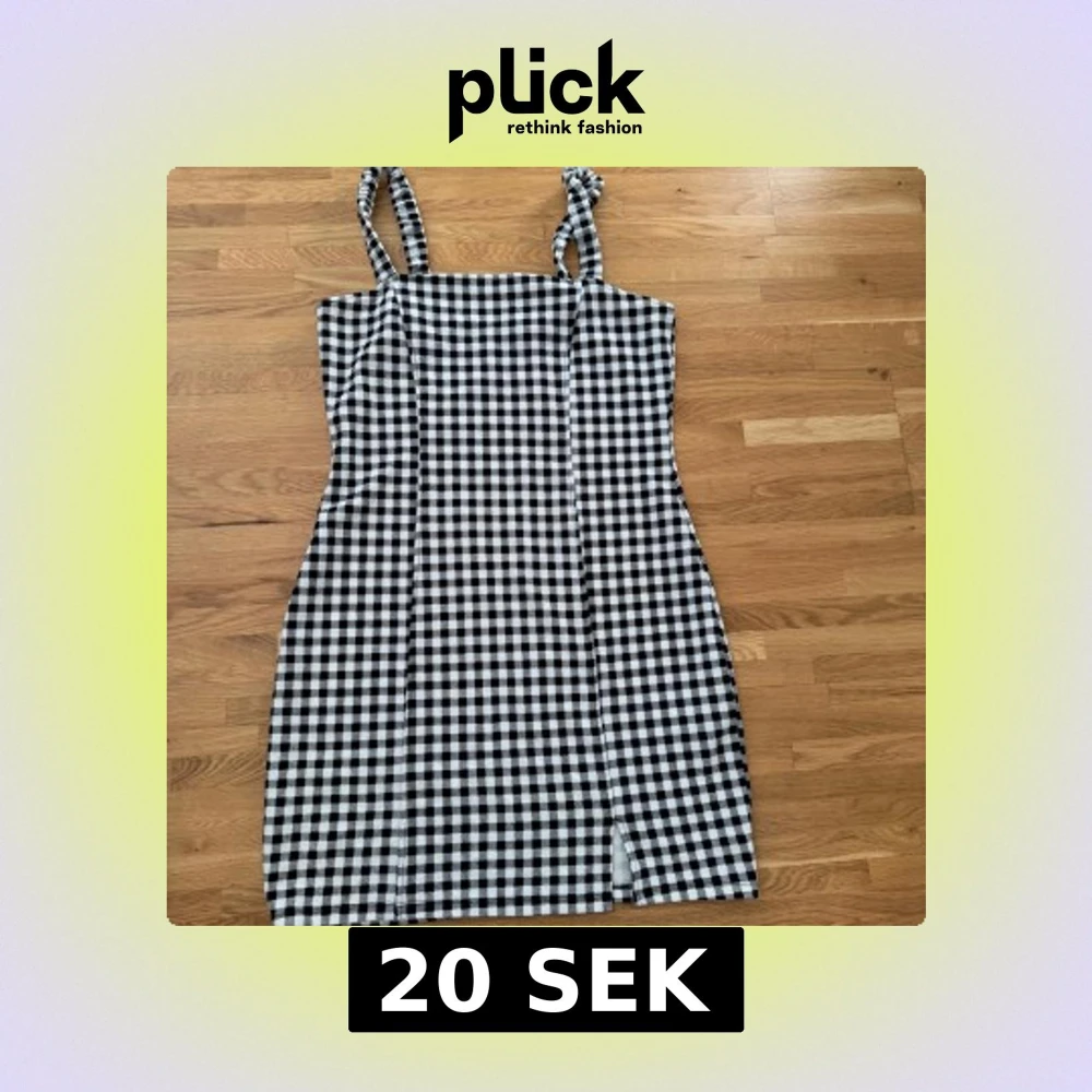 Supersnygg svartvit rutig klänning från H&M Divided i storlek L. Modellen är kort med axelband som knyts och har en liten slits framtill. Perfekt för dig som gillar en trendig och lekfull stil. Materialet är mjukt och känns bekvämt mot huden.
