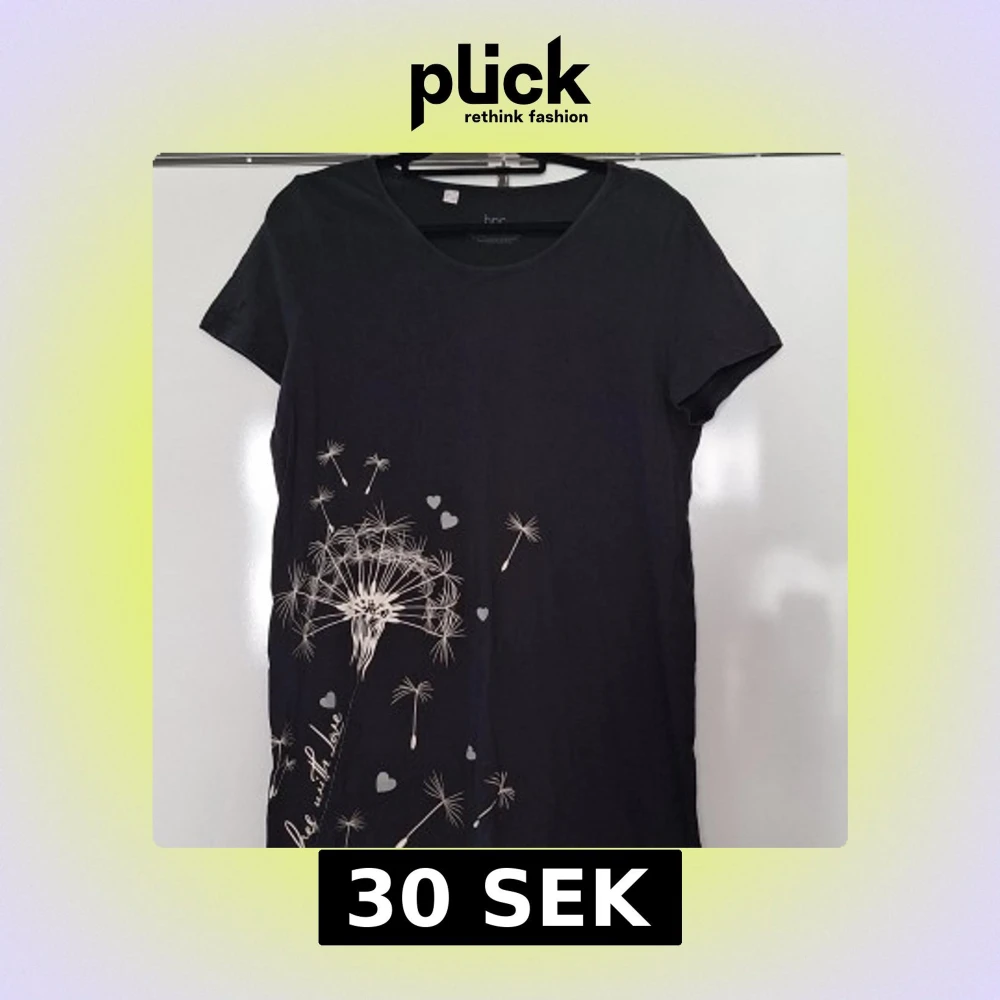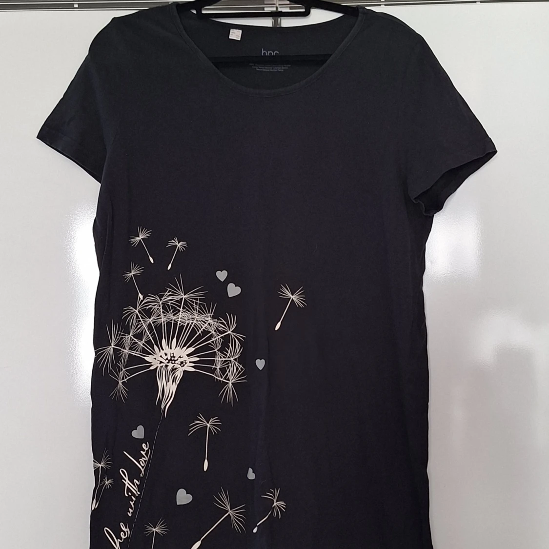 Svart kortklänning/lång t-shirt, med maskrosmotiv L