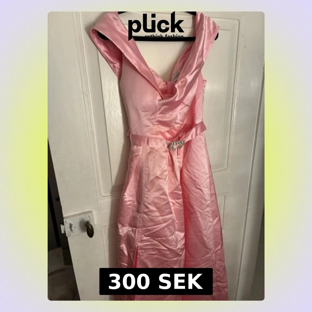 Supersnygg rosa långklänning i glansigt satinliknande material från Shein. Klänningen har bred krage, markerad midja med bälte och glittrande spänne samt en slits framtill. Perfekt för dig som vill sticka ut med en elegant och feminin look. Passar även perfekt till balklänning. Storlek L men väldigt liten i storlek, passar XS/S.