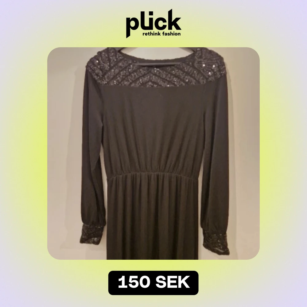 Fin långklänning med paljetter runt halden och i ärmslutet. Använd endast ett fåtalgånger. Storlek L men funkar för en M och en XL