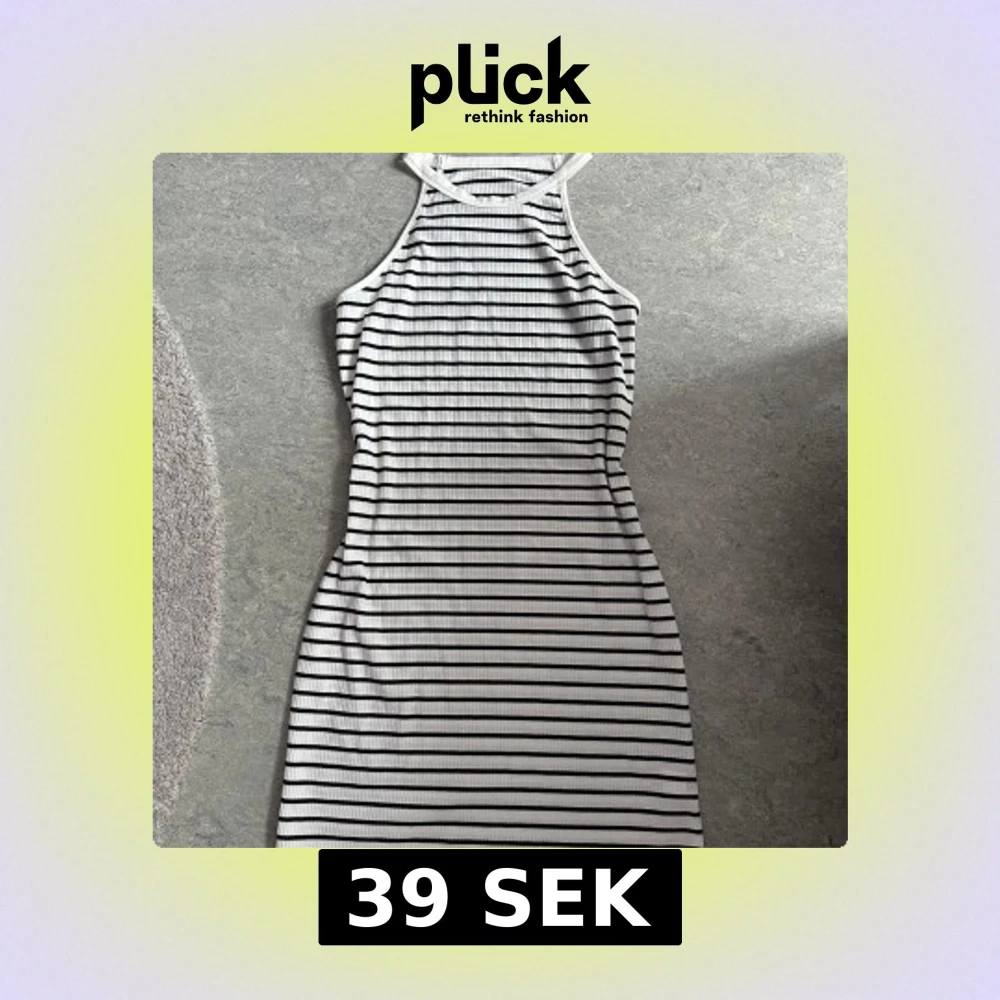 Oanvänd. Skickar iväg samma dag eller dagen efter🙌🏼Snygg ribbad kortklänning från SHEIN i vit med svarta horisontella ränder. Klänningen har en tight passform och är ärmlös med hög hals och smala axelband. Perfekt för dig som gillar en enkel men trendig look. Materialet är mjukt och stretchigt polyester.