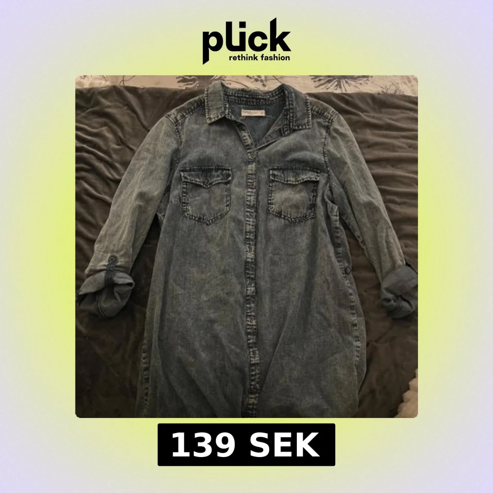 Snygg jeansskjorta/klänning från Denim by Linbex i storlek L. Skjortan har långa ärmar och två bröstfickor med knappar. Perfekt för en avslappnad stil med en klassisk denimlook.Passar mig som vanligtvis bär S