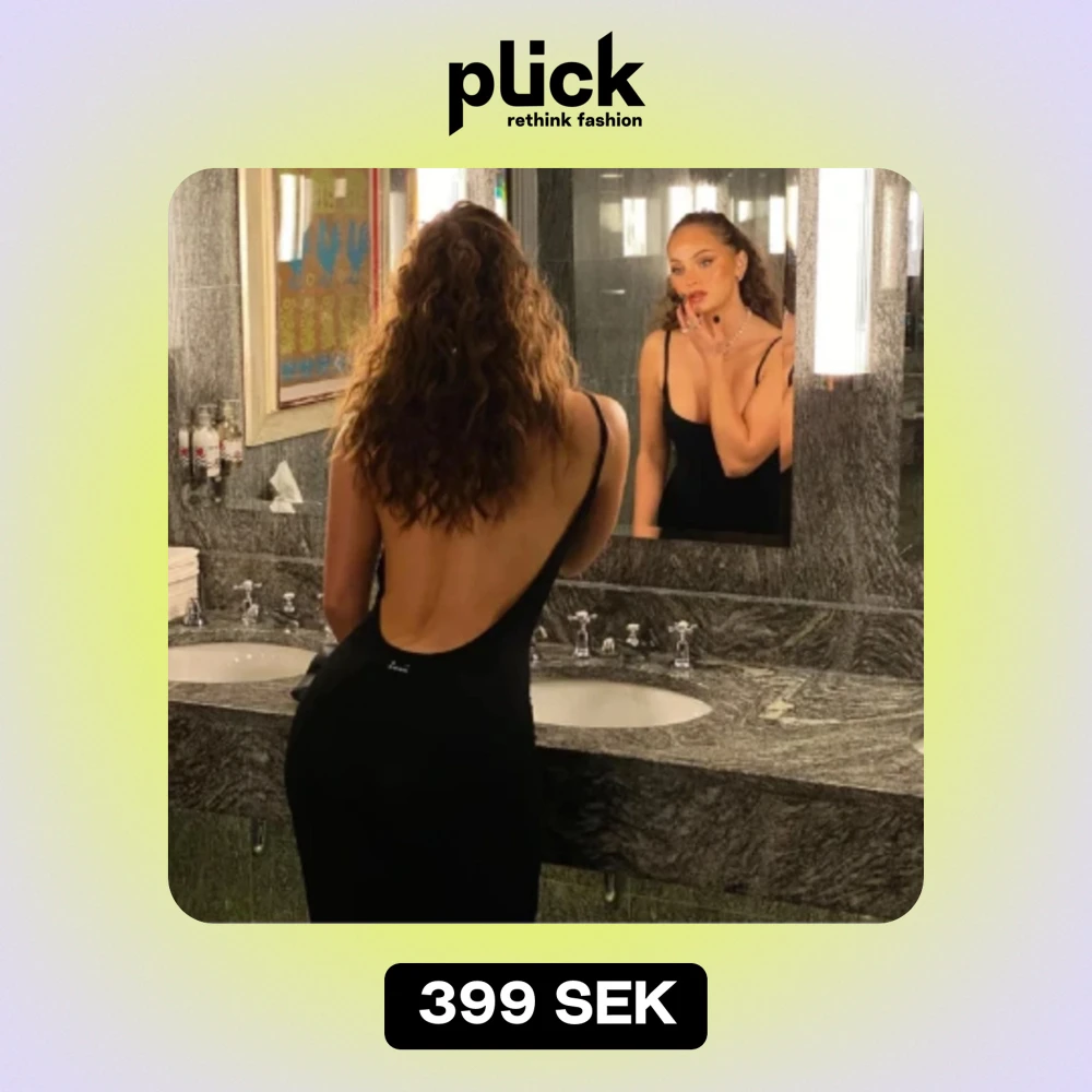 Lång klänning med öppen djup rygg. Köpte i två storlekar, så säljer min oanvända S med lappen kvar🖤 Nypris 800kr!
