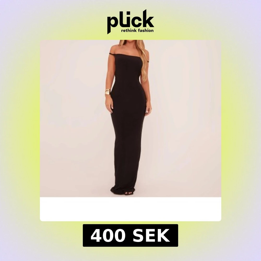 Säljer en svart långklänning med offshoulder-design och figurnära passform. Klänningen har en snygg öppen rygg som ger en extra touch av elegans. Perfekt för dig som vill ha en stilren och sofistikerad look. Materialet är mjukt och följsamt.