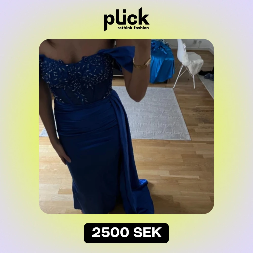 Super snygg lite mer som sticker ut än andra klänningar. En lång fin blå klänning med glitter detaljer. Passar perfekt till bal eller bröllop samt andra evenemang.