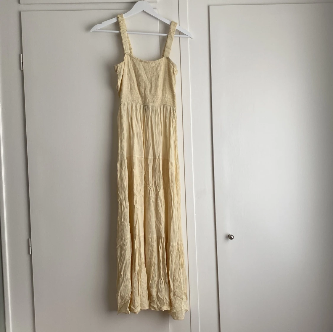 Super snygg gul långklänning, perfekt för att både klä upp och ned. Den är inte lika skynket som den ser ut på bild. Väldigt smickrande passform! Xs-M