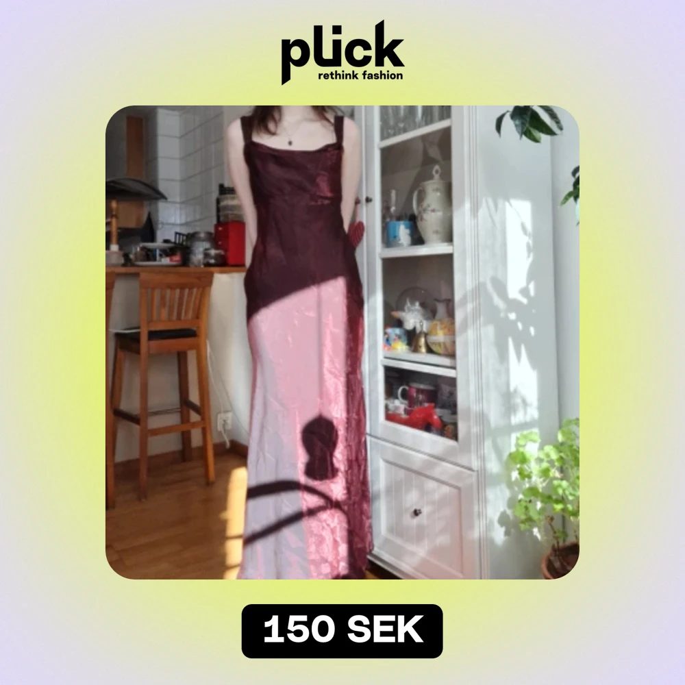 Vinröd balklänning i satin (eller liknande material). Säljer då den är lite för kort på mig. Verkligen supervackert bröstparti med rougade axelband och en fyrkantig neckline. En dragkedja sitter på sidan men är knappt synbar. (Behöver strykas) ❤️